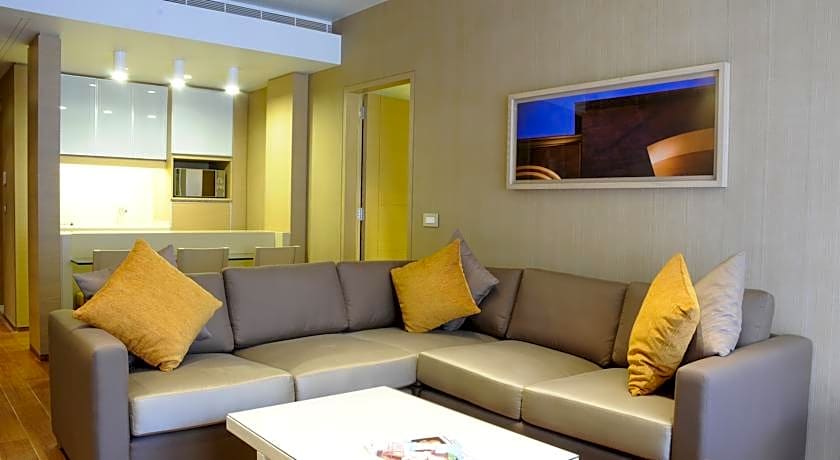 This suite includes a separate living area with a kitchenette complete with a dining area. Facilities include a desk, a dressing room and an ironing machine. The bathroom is fitted with a bath or shower, free toiletries and bathrobe. It is located from the 1st till the 11th floor.